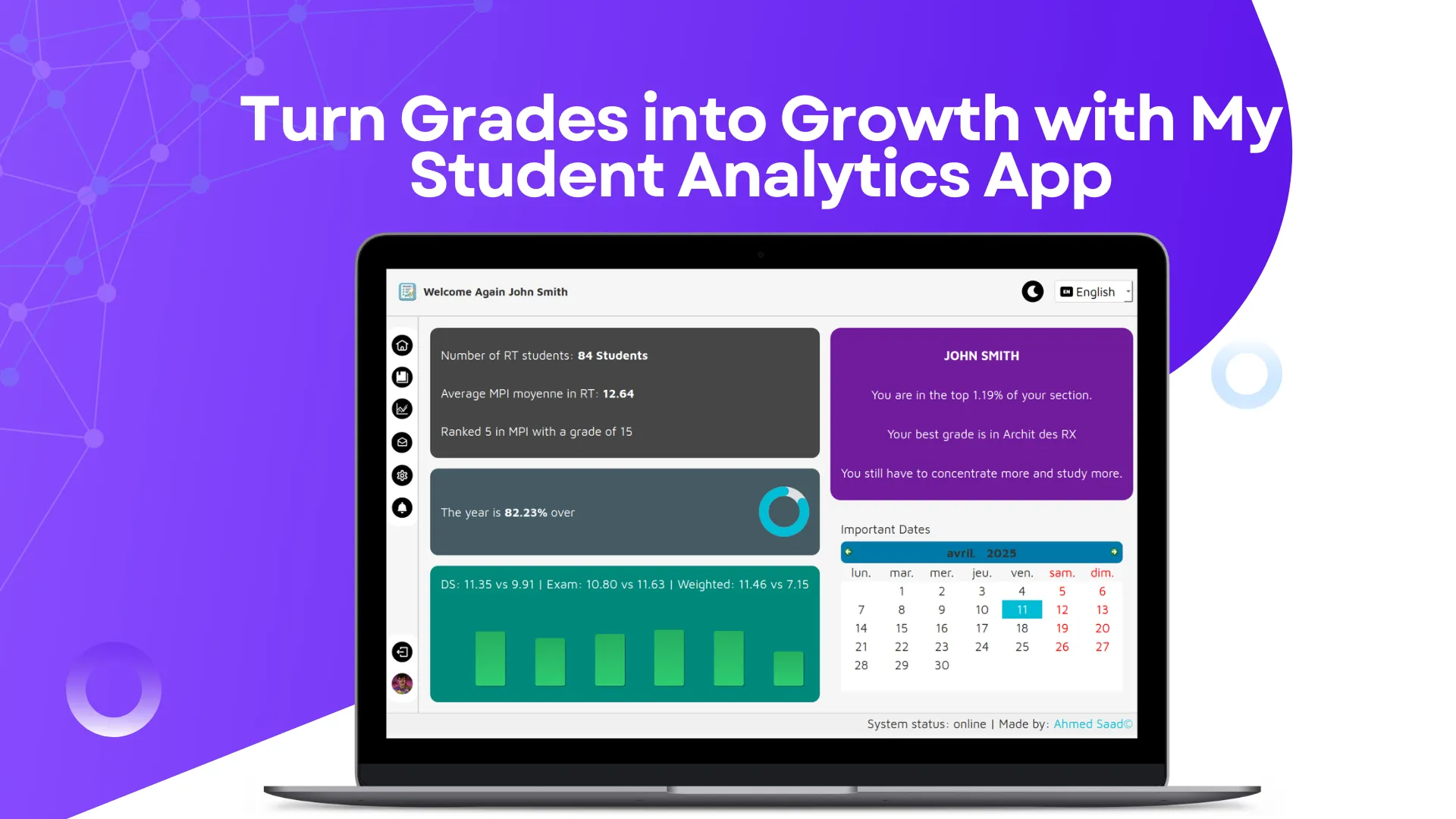 The project that taught me how software actually works. A full-stack desktop application for INSAT students: a 5947-line PyQt5 frontend (grade tracking, INSAT orientation simulation for GL/RT/IIA/IMI, spider/line/bar charts, AI reports via Llama 3.1 8B, 3 languages) backed by a 2258-line Cloudflare Worker API (50+ handlers, Neon Postgres, bcryptjs auth, Cloudinary, email notifications).